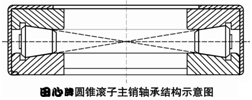 1.在軸座圈滾道面裝配密集圓錐滾子,免除保持架,增加了支承點(diǎn)。較大的提高了主銷(xiāo)軸承軸向承受負荷的能力。
